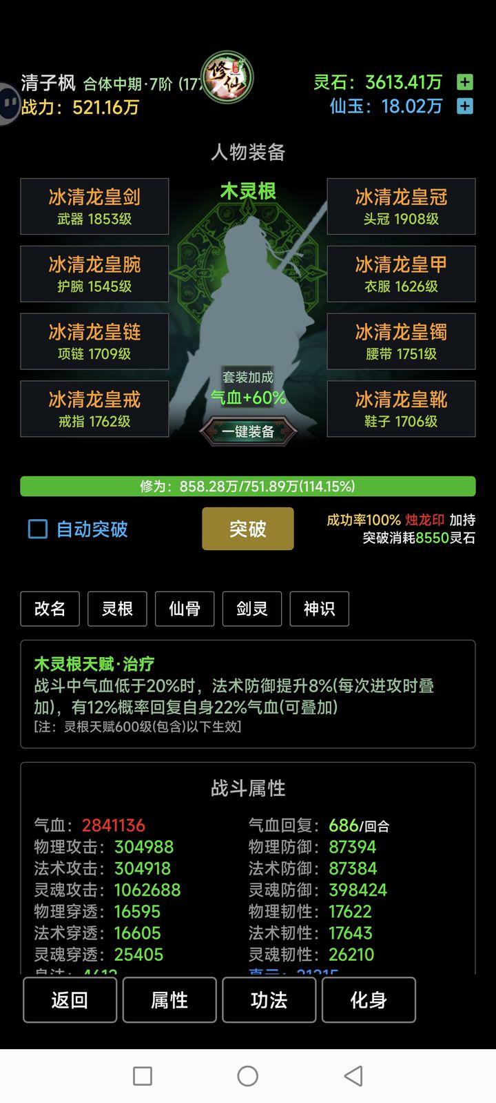 角色达到境界后立即开启化身功能,依旧魂伤装,若情况不理想,